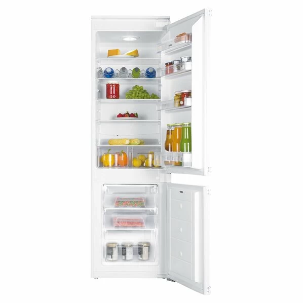 Die AMICA Einbau-Kühl-Gefrierkombination EKGC 16167 verfügt über reichlich Stauraum für Ihre Lebensmittel. Auf einem Nutzinhalt von 182 Litern im Kühlteil und 60 Litern im Gefrierteil finden Lebensmittel ihren Platz. Das Gerät ist zudem mit einer Abtauautomatik, LED-Beleuchtung und einem 4-Sterne-Gefrierfach ausgestattet. Getränke lassen sich praktisch auf einem Flaschengitter aus Chrom unterbringen.