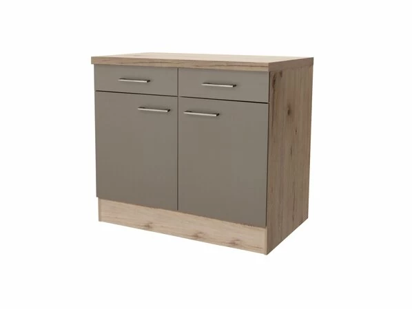 Diese Anrichte RIVA mit 100 cm Breite sorgt für reichlich Stauraummöglichkeiten in Ihrer Küche! Hinter zwei Drehtüren und in zwei Schubkästen finden Sie mehr als ausreichenden Platz für viele Ihrer Küchenutensilien.