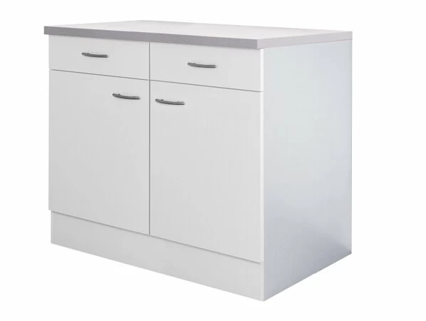 Diese Anrichte WITO mit 100 cm Breite sorgt für reichlich Stauraummöglichkeiten in Ihrer Küche! Hinter zwei Drehtüren und in zwei Schubkästen finden Sie mehr als ausreichenden Platz für viele Ihrer Küchenutensilien.