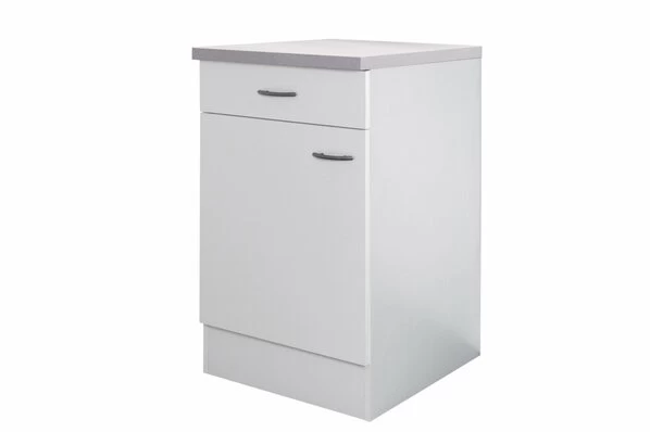 Für zusätzlichen Stauraum in Ihrer Küche sorgt diese Anrichte WITO in zeitloser Optik und mit 50 cm Breite. Hinter der Drehtür verbirgt sich ein Einlegeboden, der den Innenraum in zwei geräumige Fächer aufteilt. Der Schubkasten bietet sich ideal für Ihr Besteck oder kleinere Utensilien an.