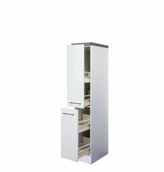 Schmal, aber geräumig ist dieser Apothekerschrank ELEA mit insgesamt 2 Auszügen. Vier Ablagen bieten reichlich Platz zum Verstauen verschiedenster Küchenutensilien. Nicht nur die Stauraummöglichkeiten überzeugen, sondern auch das zeitlose Design.