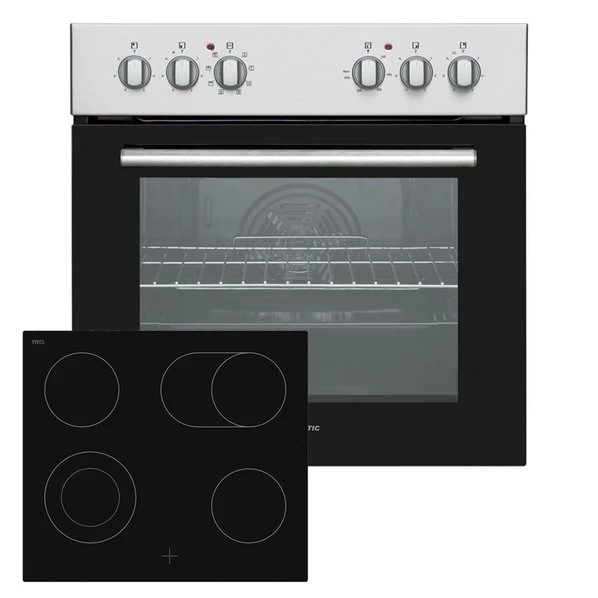 Praktisches ATLANTIC Einbau-Herdset ATLEH60EDS10A mit 7 verschiedenen Ofen-Funktionen und Zweikreis, wie Bräterzone im Glaskeramik-Kochfeld. Dieses Herdset lässt keine Wünsche offen. Das Backofenvolumen beträgt 64 Liter und ist mit bereits einem Ofenrost und einem Backblech ausgestattet. Vom Auftauen, über Ober-/ Unterhitze mit und ohne Umluft, Grill, Doppelgrill bis hin zum Doppelgrill mit Umluft ist alles möglich. Das Kochfeld ist für Schmorbraten und extra kleine Töpfe geeignet ohne Energie zu verschwenden.