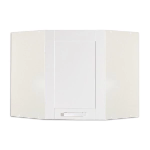 Mit einem Eckhänger können Sie den Raum Ihrer Küche voll ausnutzen und noch bequem an alle Utensilien herankommen. In dieser Schrankserie hat dieser natürlich auch eine weiße Front mit einer Lacklaminat Oberfläche und einen silbernen Griff. Im Inneren finden Sie zwei Einlegeböden, die den Hänger in zwei Etagen aufteilen und so die Ordnung erleichtert.