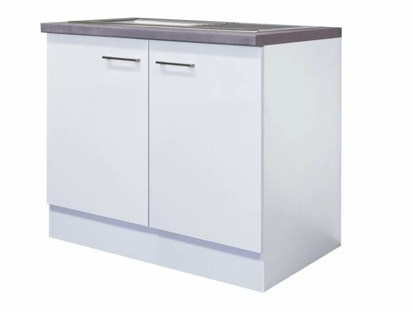 Spülenunterschrank ELEA – Weiß-Beton – Mit Spüle – 100 Cm Breit